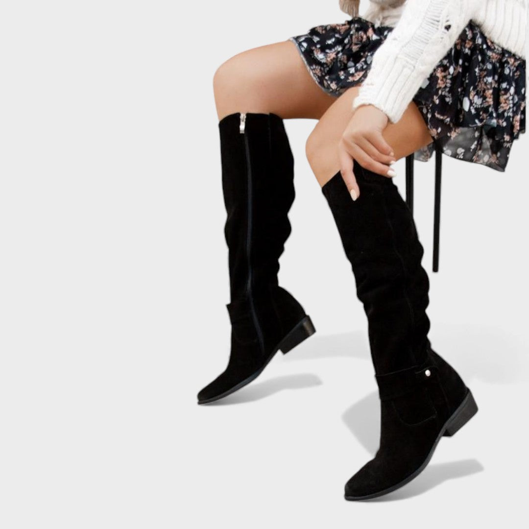 Tyto vysoké kozačky spojují eleganci, pohodlí a design, který se snadno přizpůsobí různým stylům. Jemné provedení a střih, který opticky prodlužuje nohy, dodají každému outfitu moderní a ženský nádech. Skvěle ladí se šaty, sukněmi i džínami a vždy přidají špetku šarmu a sebevědomí.